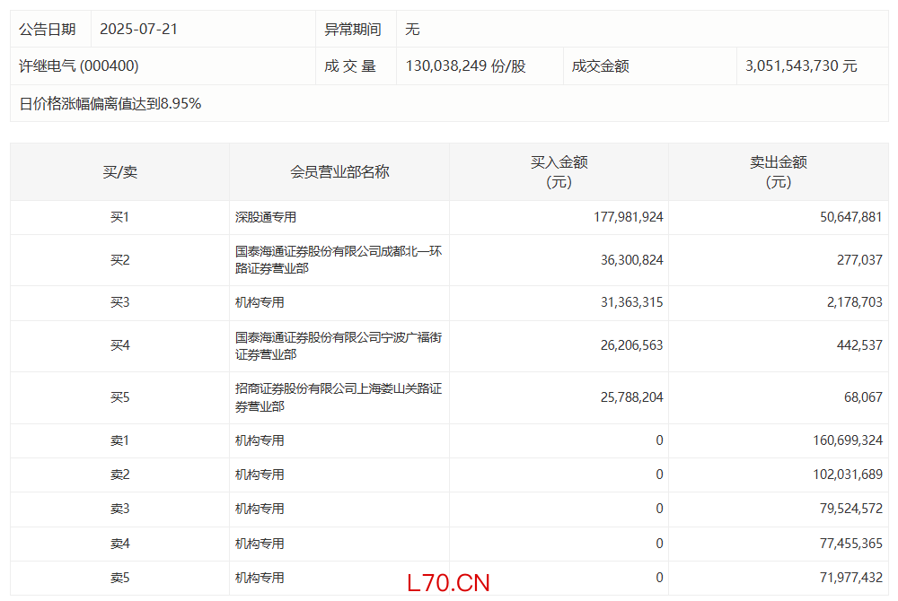 许继电气今日涨停 五机构合计卖出4.92亿元