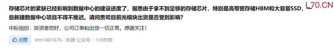 中际旭创:公司订单和出货一切正常