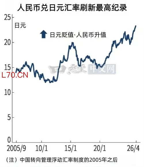 4月13日,人民币对日元汇率一度达到1元兑23.40日元区间。2025年底为1元兑22.0~22.4日元。人民币对美元的汇率在4月14日达到1美元兑6.80~6.84元,这是3年来的最高人民币升值水平。4月14日,中国海关总署公布的3月贸易统计(以美元计价)显示,出口减去进口后得出的贸易顺差为511亿美元,持续的贸易顺差为人民币买盘提供了支撑。