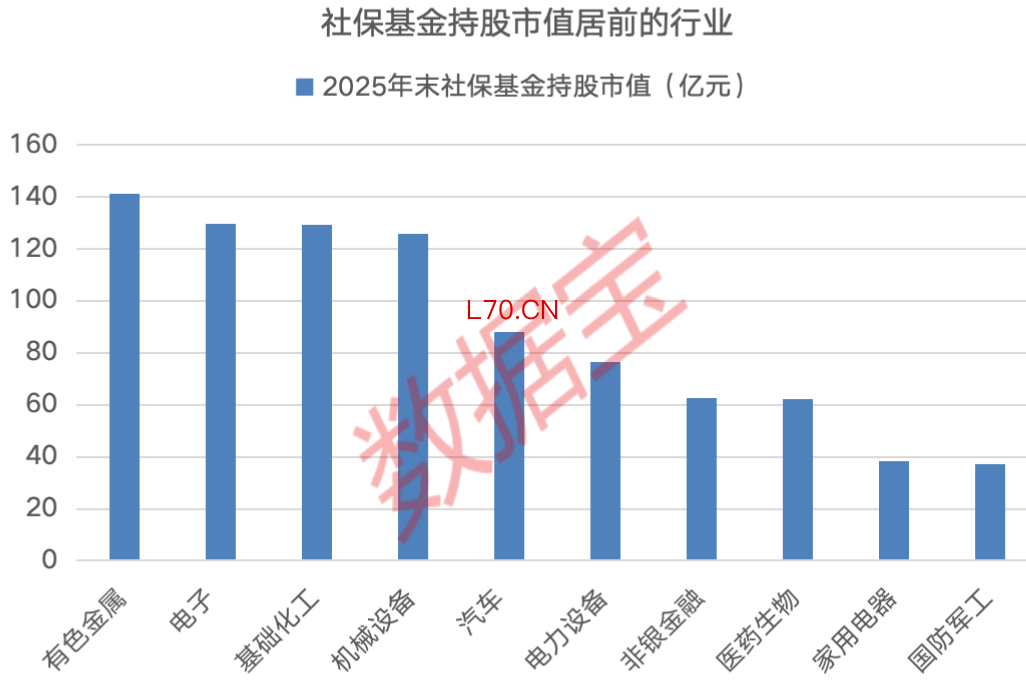 分行业来看,社保基金2025年末对4个行业持股市值超过100亿元,其中既包括基础化工与机械设备两个业绩稳健的传统行业,也包括近年来高速增长的电子行业,同时还有受益于涨价周期、盈利能力增强的有色金属行业。
