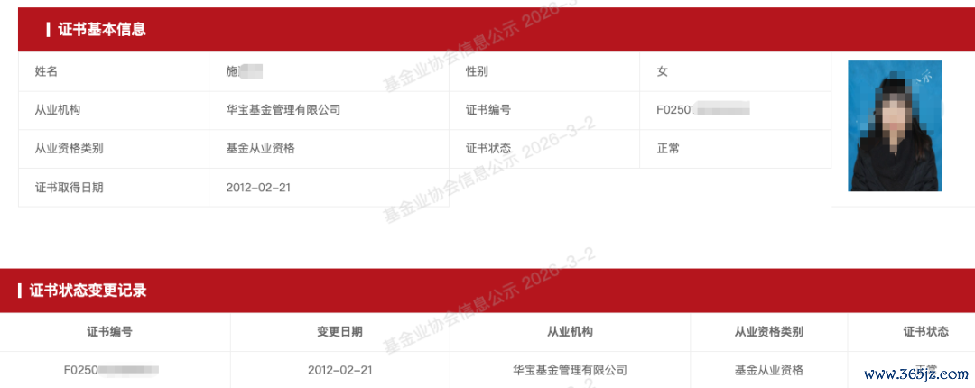 基金业协会信息显示,胡某朋友圈中提及的施某自2012年2月加入华宝基金,目前仍在华宝基金任职。