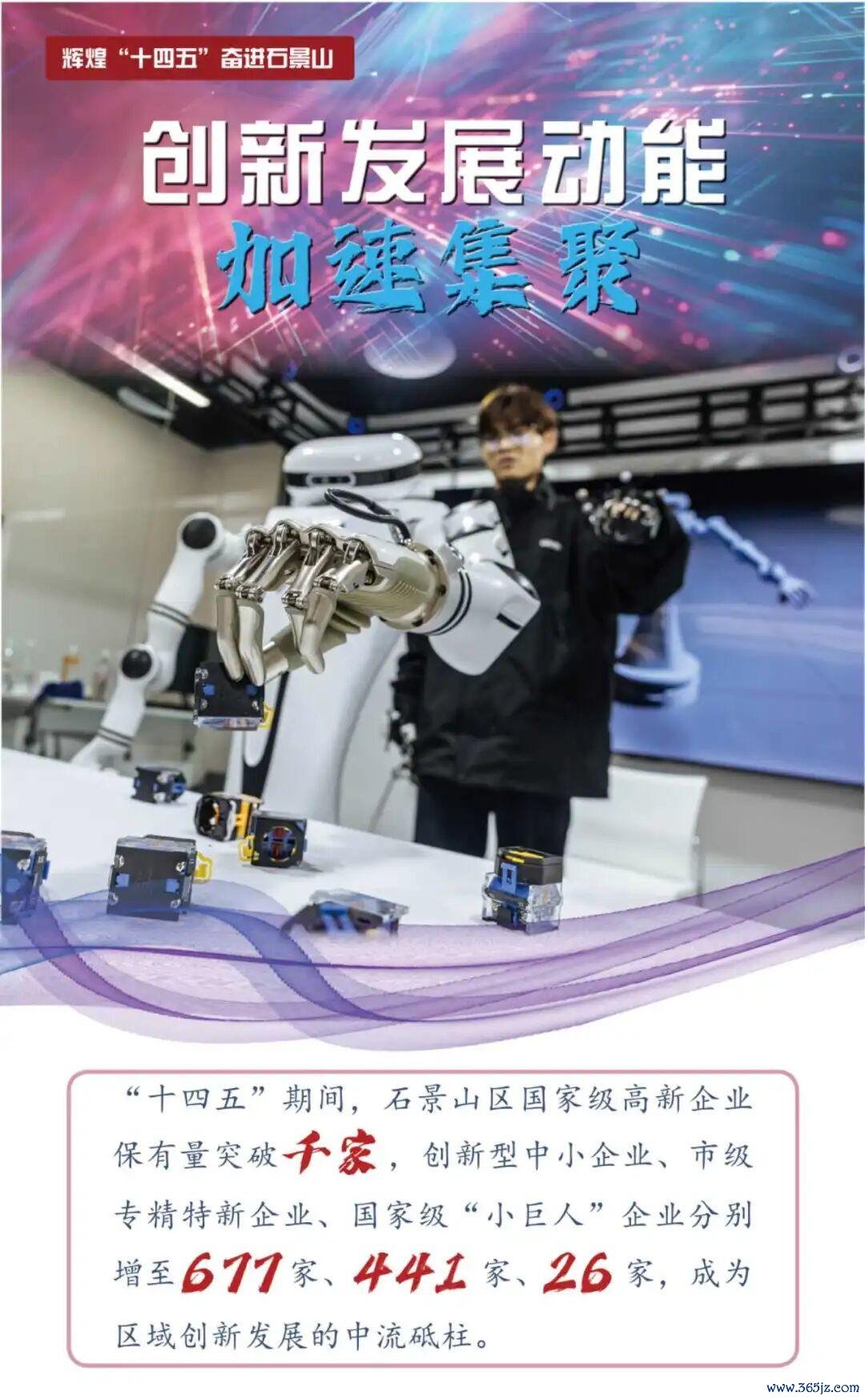 石景山区实施“中小企业专精特新伙伴成长计划”,国家级高新企业保有量突破千家,创新型中小企业、市级专精特新企业、国家级“小巨人”企业分别增至677家、441家、26家,成为区域创新发展的中流砥柱。