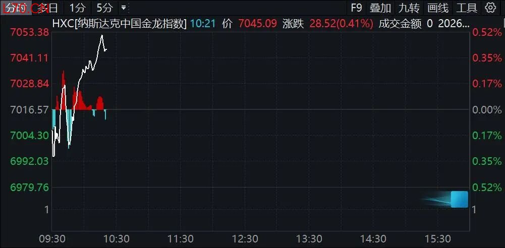 元股证券:ygzq.hk中概股方面,纳斯达克中国金龙指数拉升转为上涨。大全新能源涨超3%,阿里巴巴涨超1%;小鹏汽车、蔚来跌超1%。