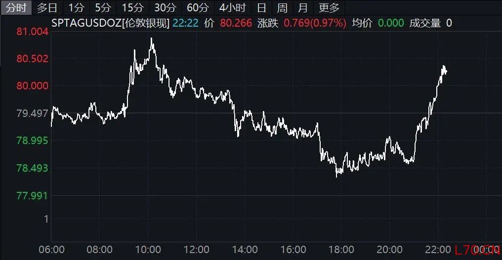 国际金银拉升,现货黄金跌幅收窄,现货白银涨近1%。